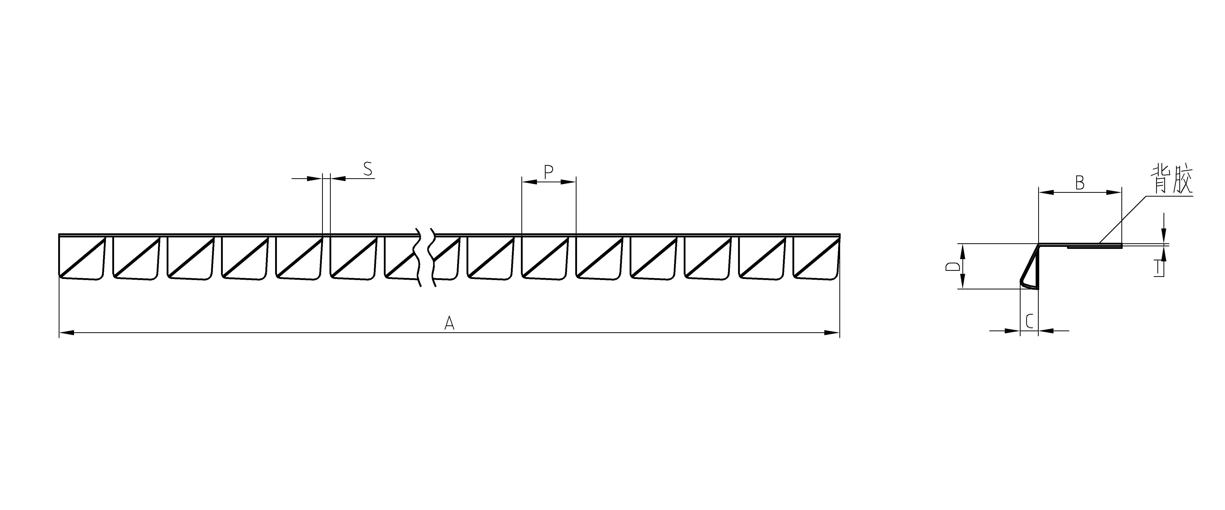 雙向扭轉型指形簧片,從圖中可以看到,在壓敏膠粘合面的兩側,都設計有可扭轉折疊的指形結構。相當于一次安裝,起到了兩條簧片的作用,再次節省了安裝空間。