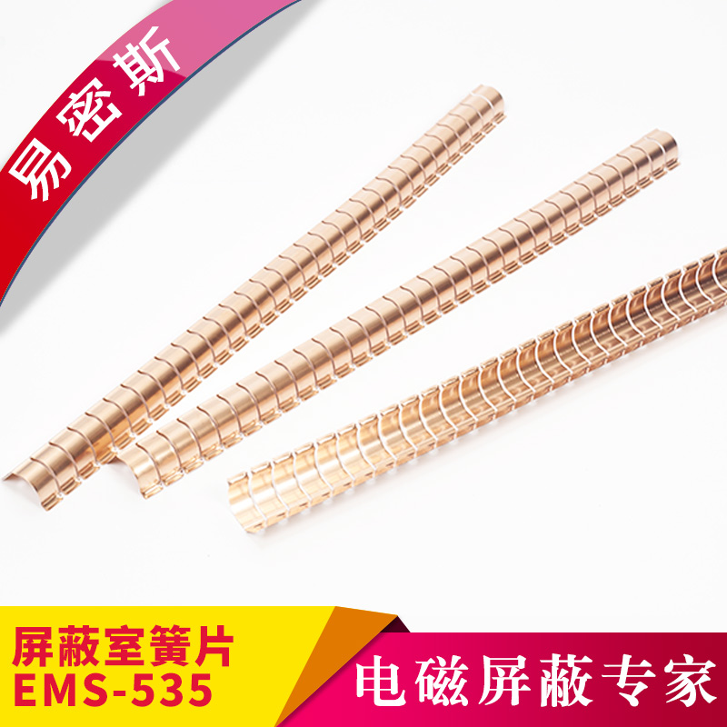 易密斯™鈹銅簧片由具有電磁兼容屏蔽效果的進口鈹銅合金C17200制成,具有優秀的抗壓性、回彈性和耐腐蝕性,并提供很好的寬頻電磁屏蔽效果,特別適用于通訊機柜、電腦、屏蔽室/門、面板及插拔件的間隙填充。易密斯™鈹銅簧片現有60余款標準件可供選擇,同時可支持定制。