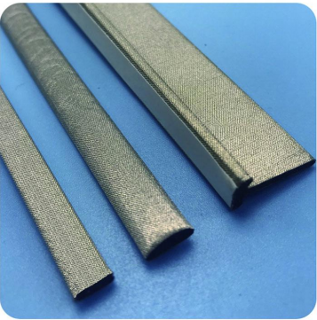 用金屬絲編織而成的套管(形狀類似屏蔽電纜的屏蔽層),可以是空的,也可以是在內部插入橡膠芯增加反彈力,減小永久性形變。由于金屬絲具有較大的電感,在高頻時,感抗較大,因此,金屬絲網襯墊的直流電阻很小,但其射頻阻抗卻很大。綜上所述,金屬絲網密封襯墊的低頻屏蔽效能較高,但高頻屏蔽效能卻比較低。